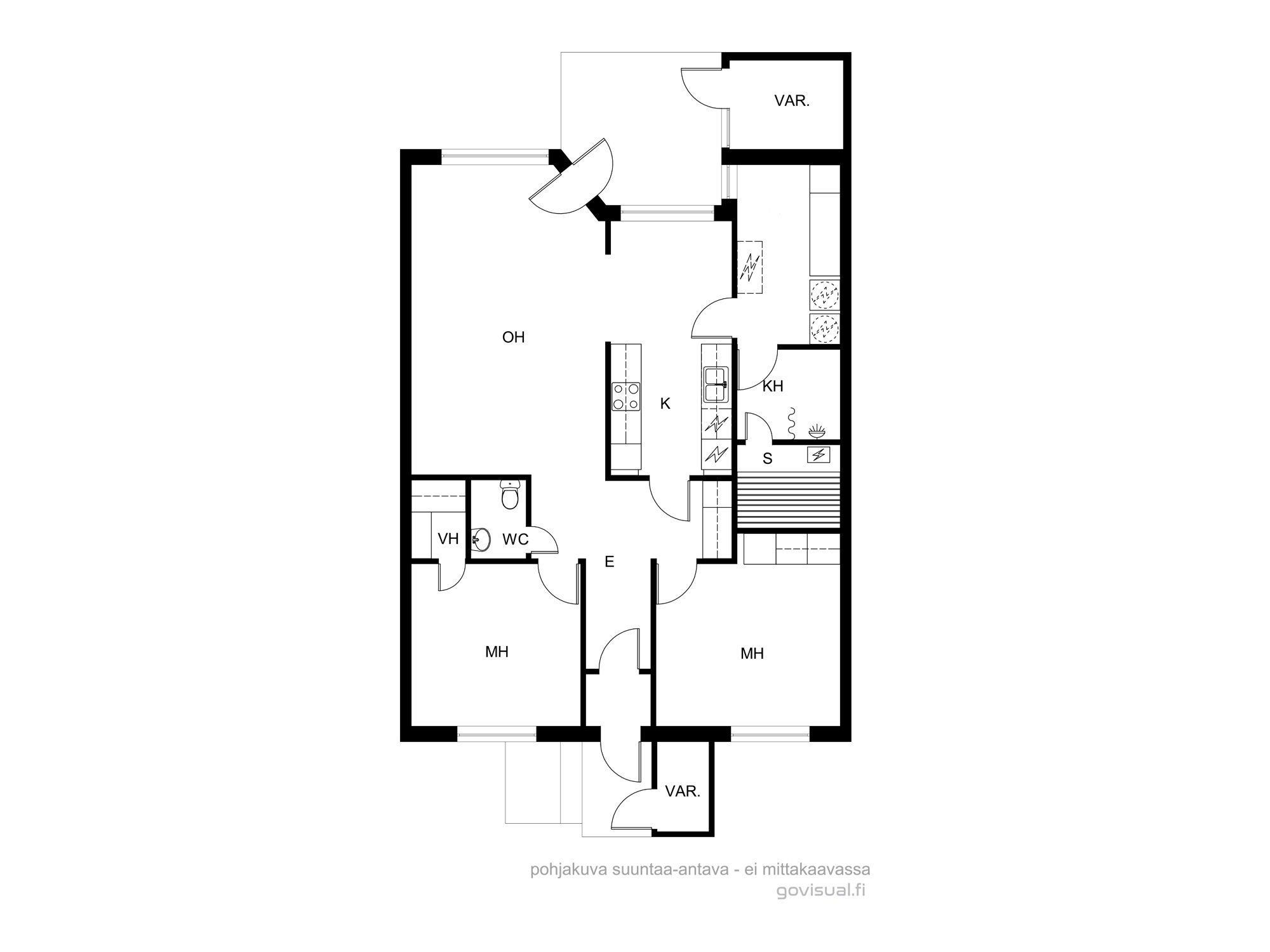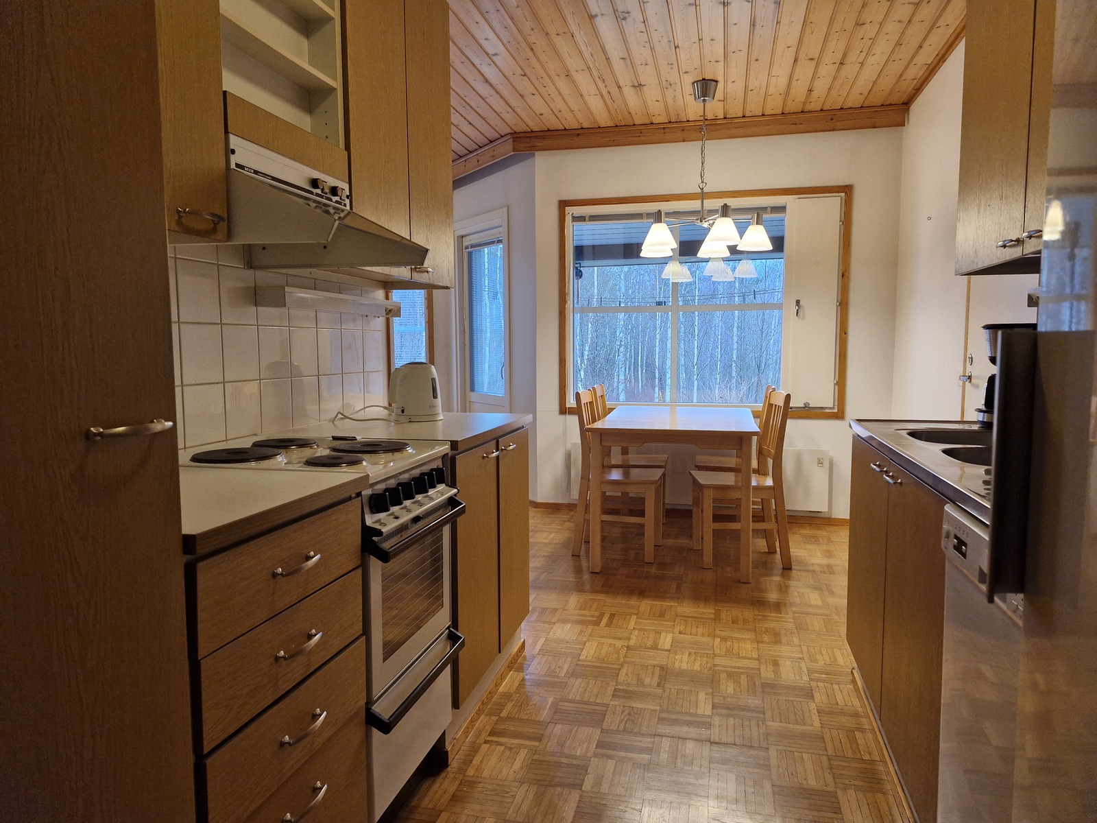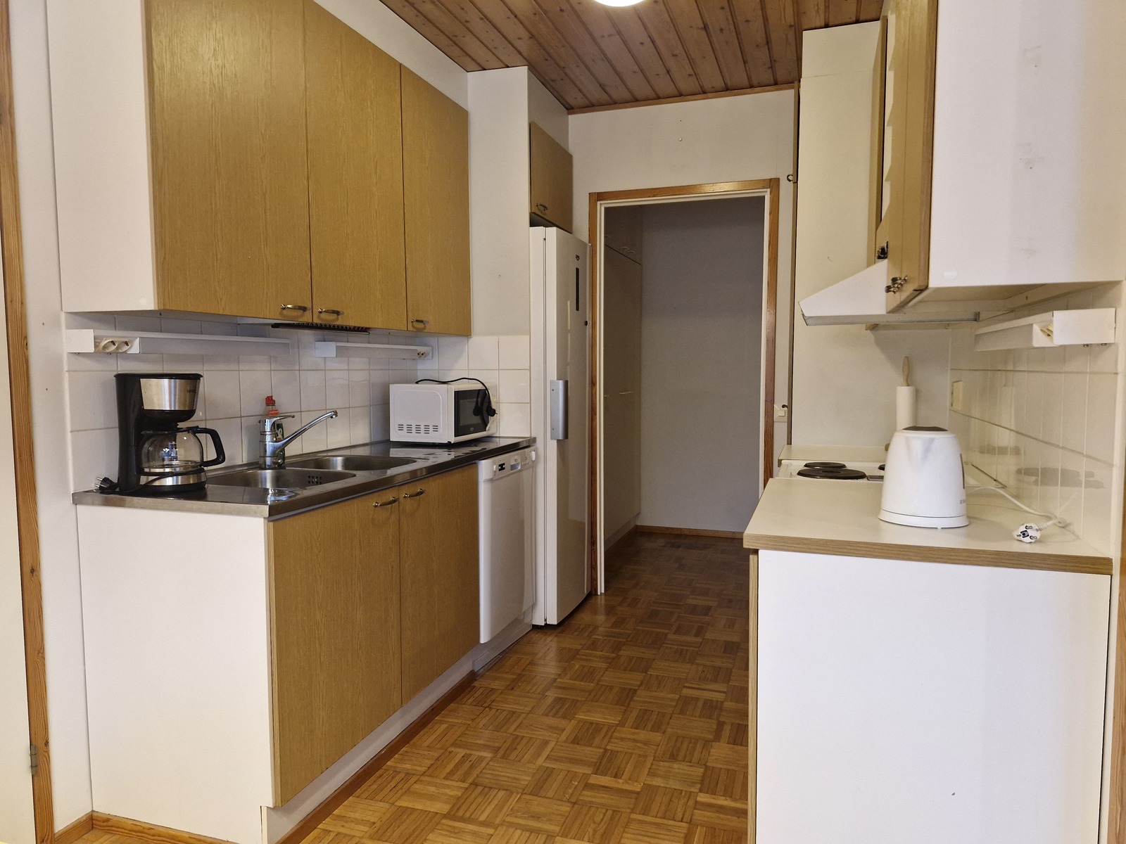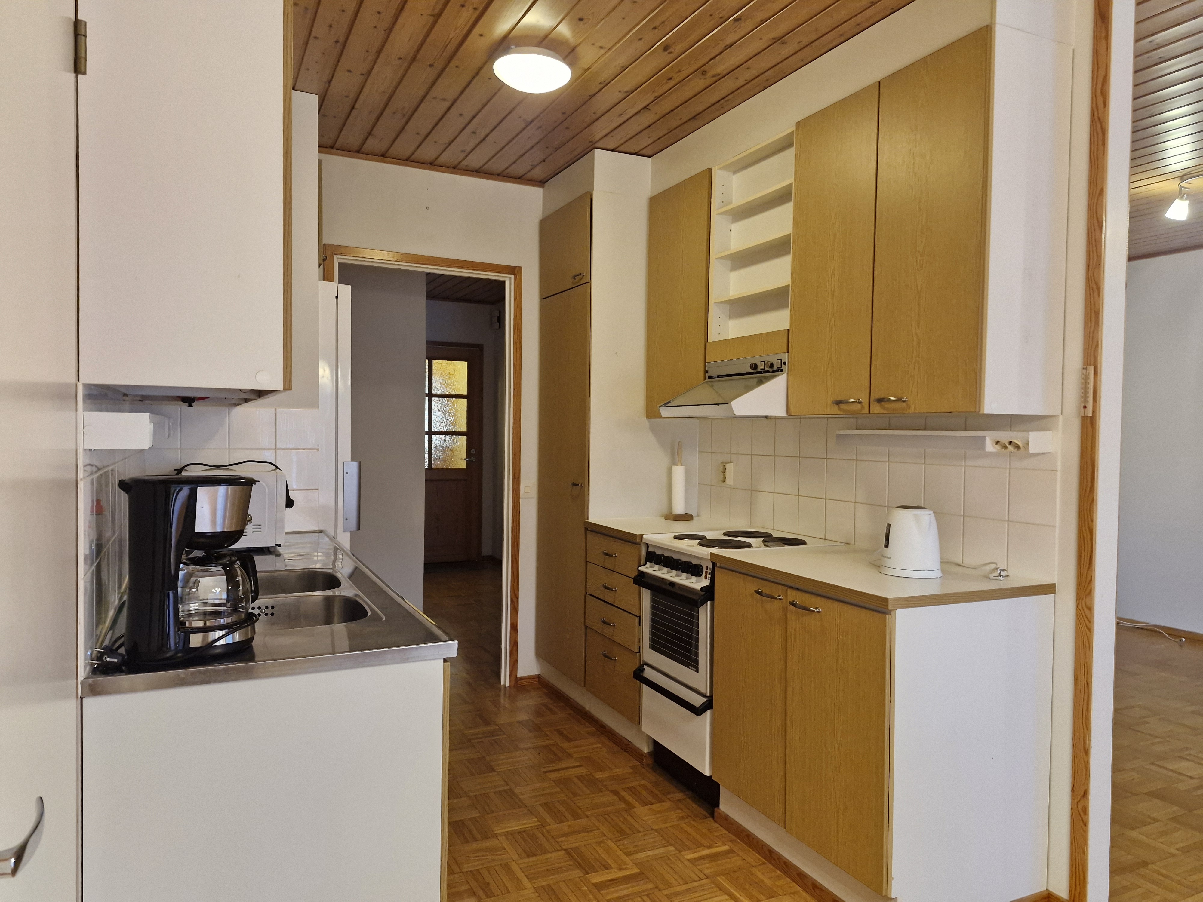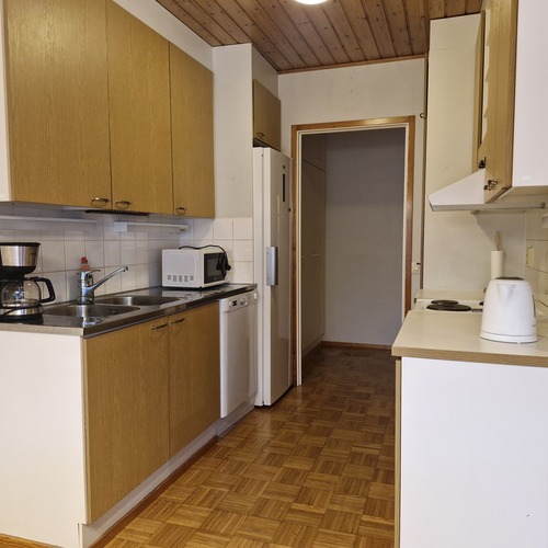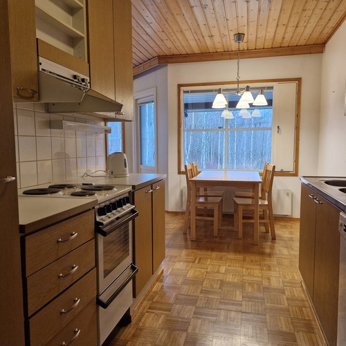 Varusteet: jääkaappi, sähköliesi, mikroaaltouuni, liesituuletin hormilla, astianpesukone, astianpesukoneliitäntä