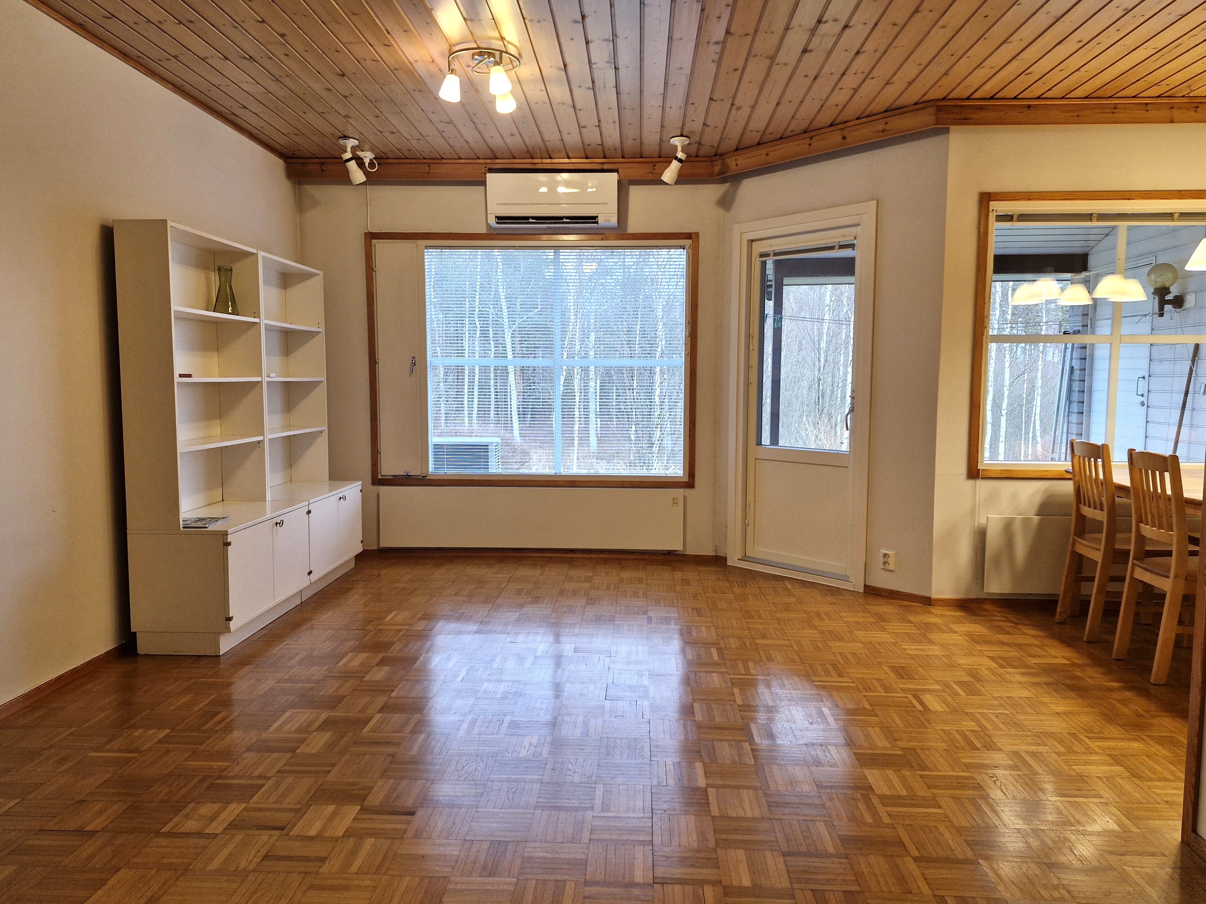 Tilava rivitaloasunto, jonka huonejärjestyksenä on olohuone, keittiö, kaksi makuuhuonetta, erillinen wc, kodinhoitohuone/pukuhuone, kylpyhuone, sauna, vaatehuone, eteistilat ja tuulikaappi. Olohuoneessa keskeisellä paikalla on ilmalämpöpumppu, joka tasaa sähköenergian kulutusta ja viilentää tarvittaessa tiloja kesähelteillä. Asunnon yhteydestä löytyy kaksi ulkovarastoa, autopaikka sijaitsee huoneiston edessä. Tämän rivitalokolmion takapihalta pilkistää Puruveden Sorvaslahti. Punkaharjun keskustan palveluihin on matkaa n. 2 kilometriä. Ota yhteyttä ja sovi esittelyaikasi – tämä rauhallinen koti odottaa uusia asukkaita!