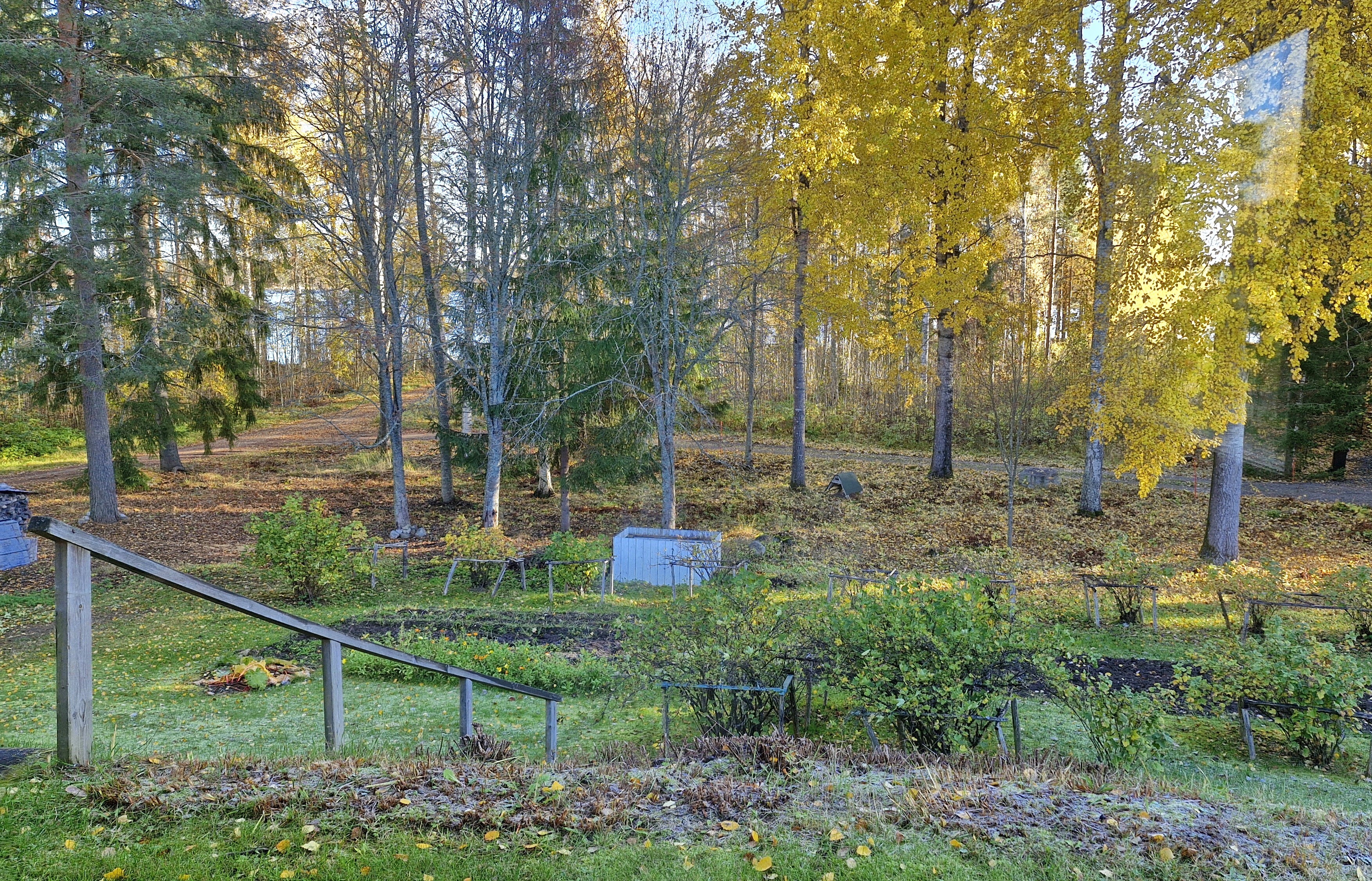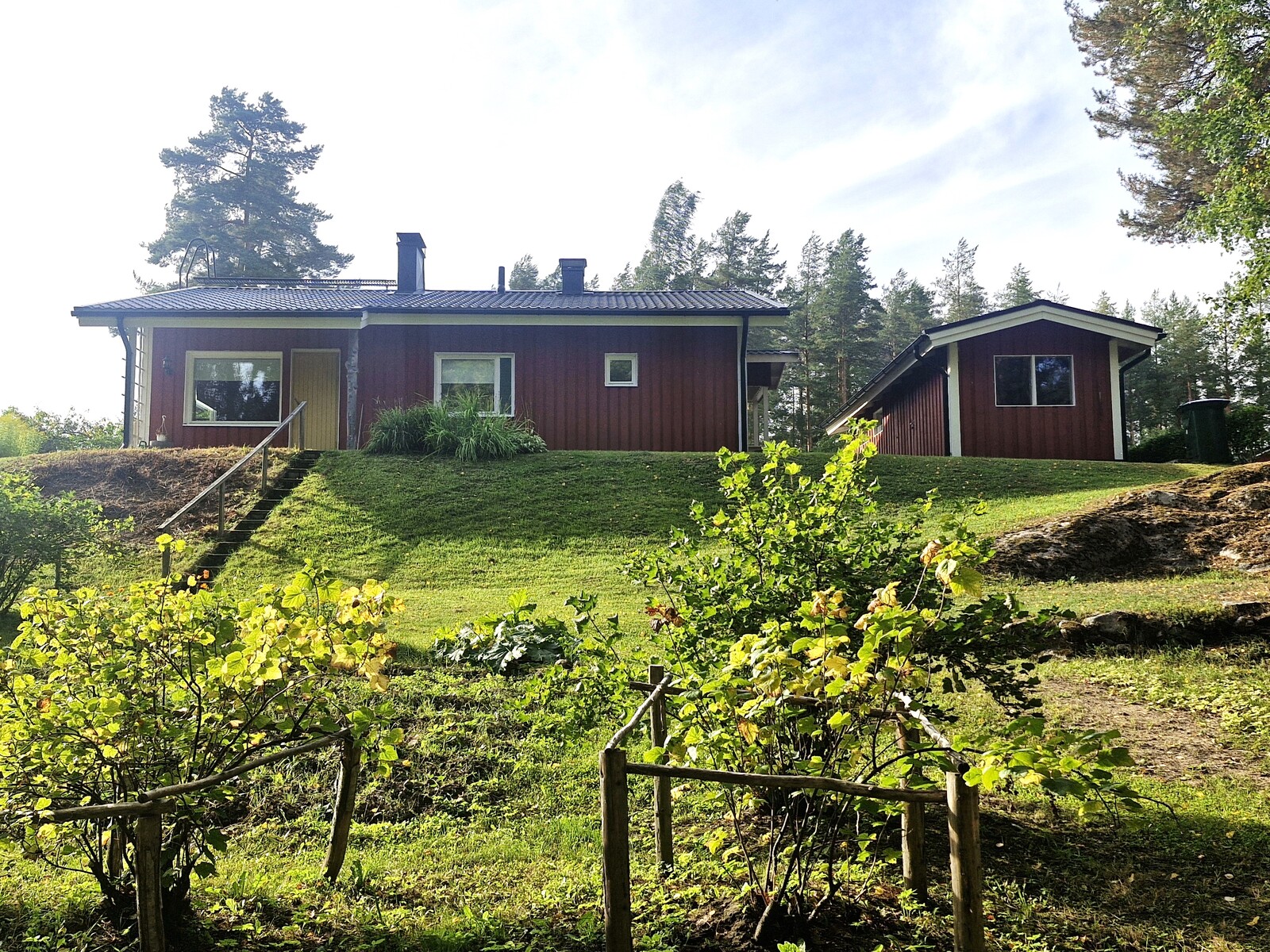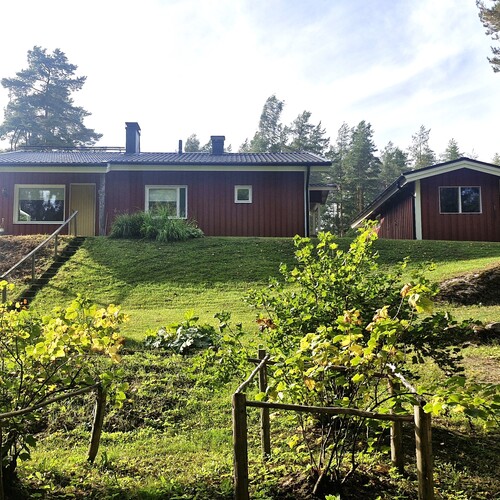 Kodin oleskelupiha ja puutarha on rauhallinen rajoittuen puistometsään. Hyötypuutarhassa kasvaa marjapensaita sekä perennaistutuksia ja siellä on hyvin tilaa kasvi- ja perunamaalle tai vaikkapa uudisrakennukselle!