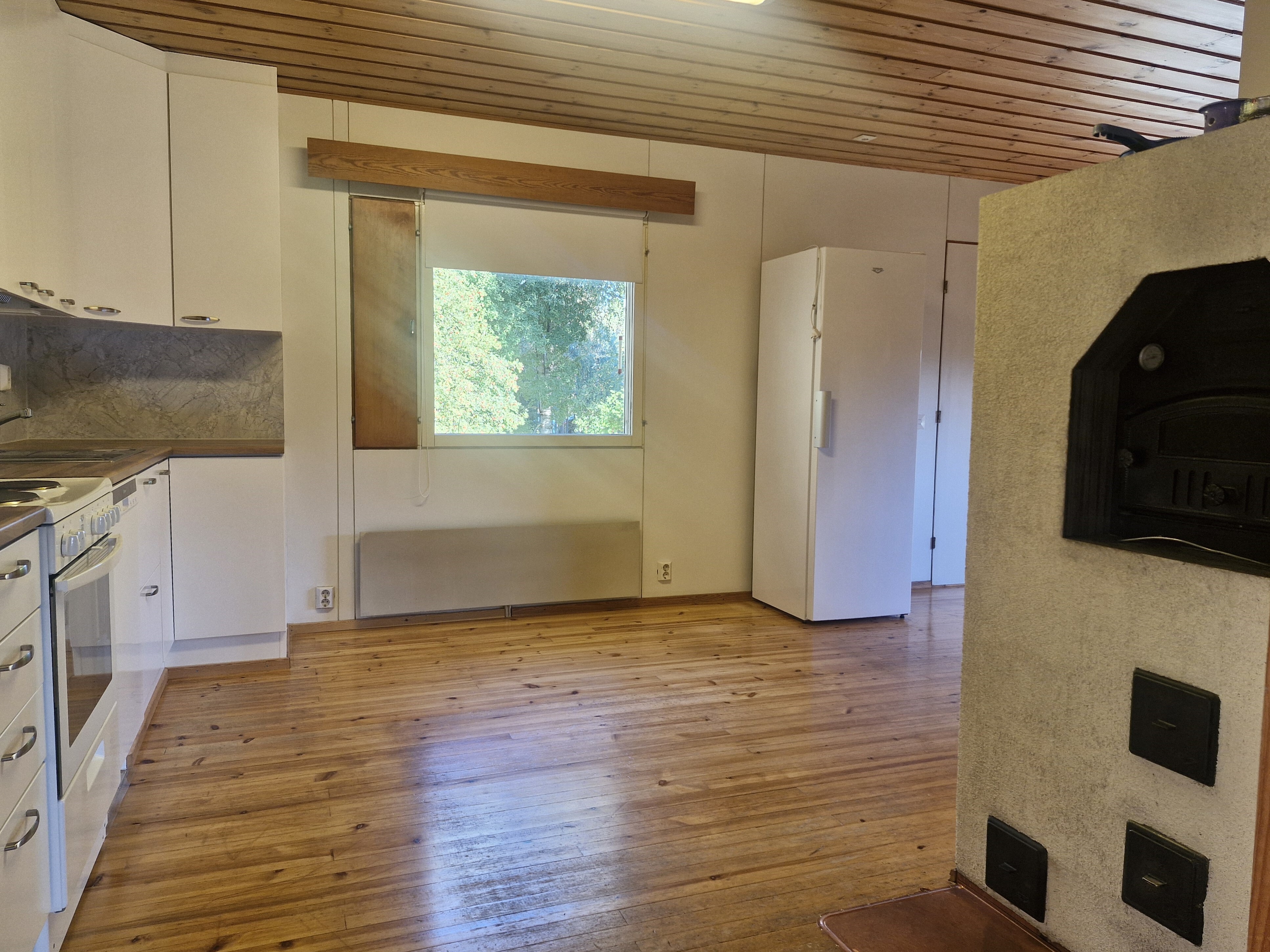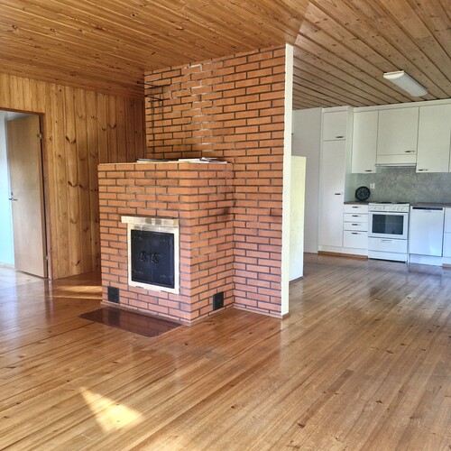 Leivinuuni keittiössä, varaava tiilitakka olohuoneessa.