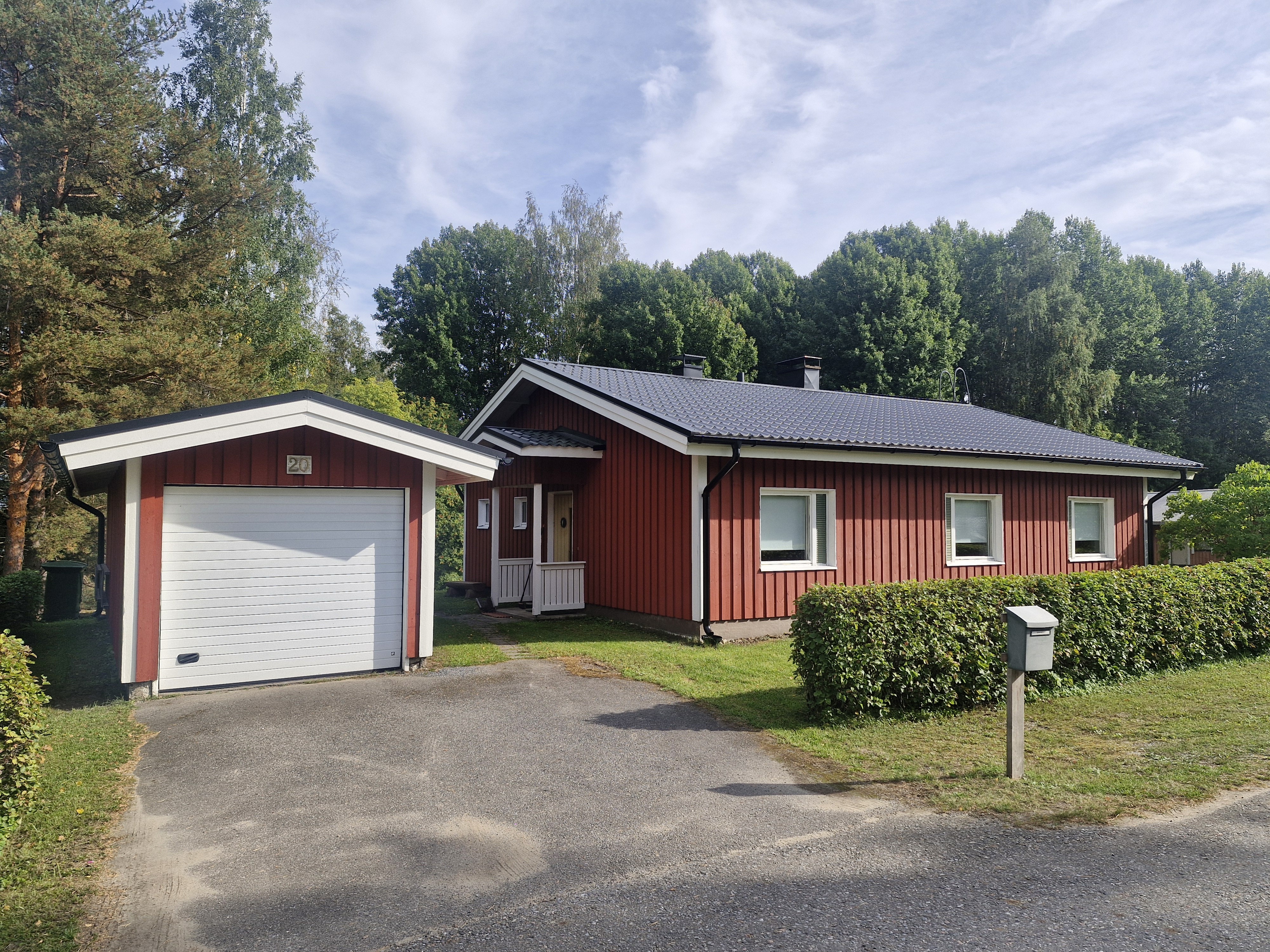 Talousrakennuksen päädyssä on autotalli, puuliiteri ja varastohuone, jonka alla kellaritila. Kiinteistöllä on valokuituvalmius.