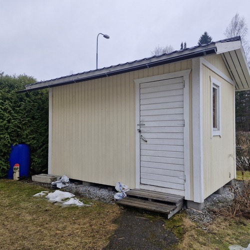 Lisätietoa rakennuksesta: V. 2001 valmistunut, ulkomitat 3,90 x 2,50 m. Peltikate.