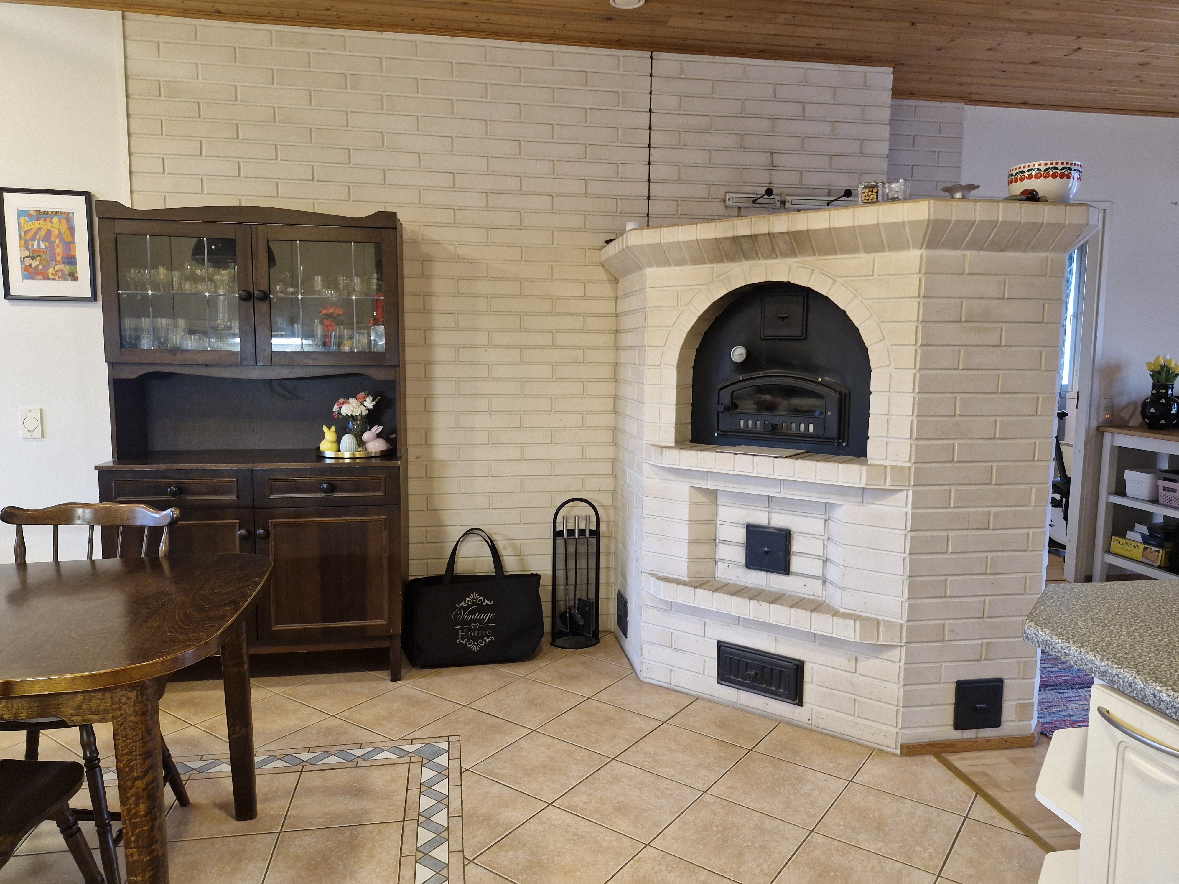 Seinien pintamateriaali: kaakeli, maalattu, osalaatoitus