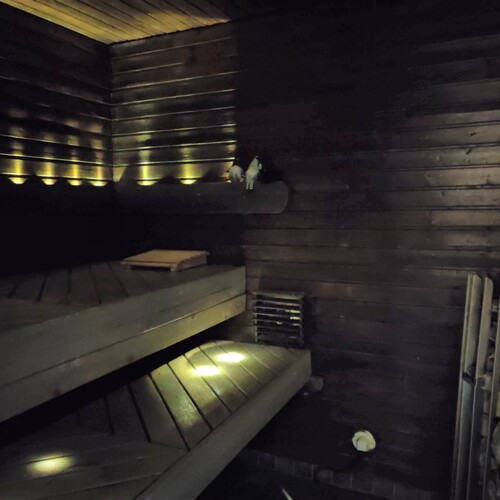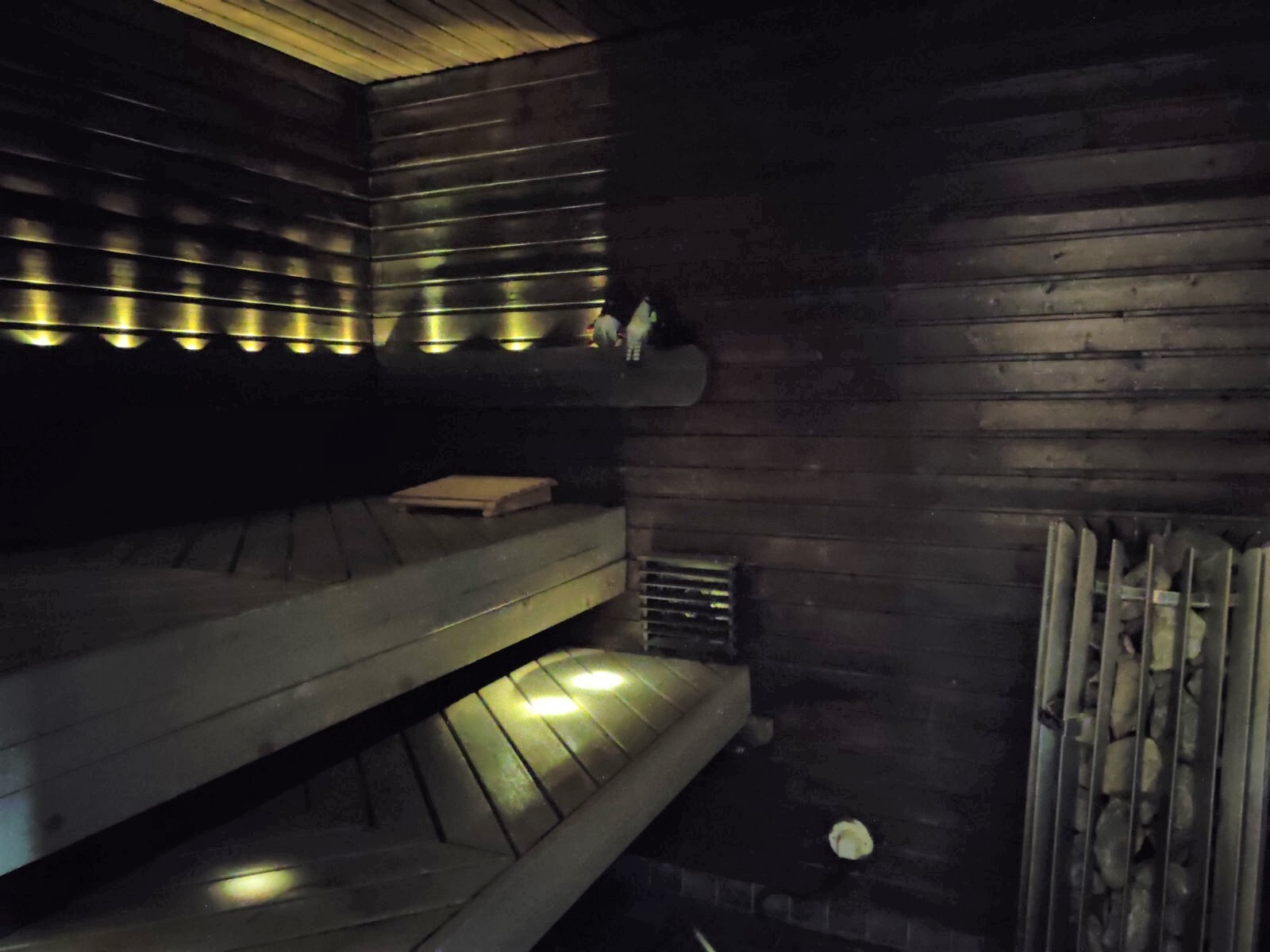 Saunassa varaus puukiukaalle valmiina.