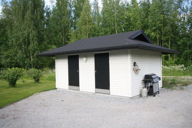 Lisätietoa rakennuksesta: Eristämätön ulkorakennus, jossa puuliiteri ja varastotila. Huopakate.