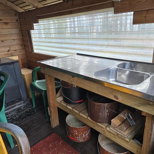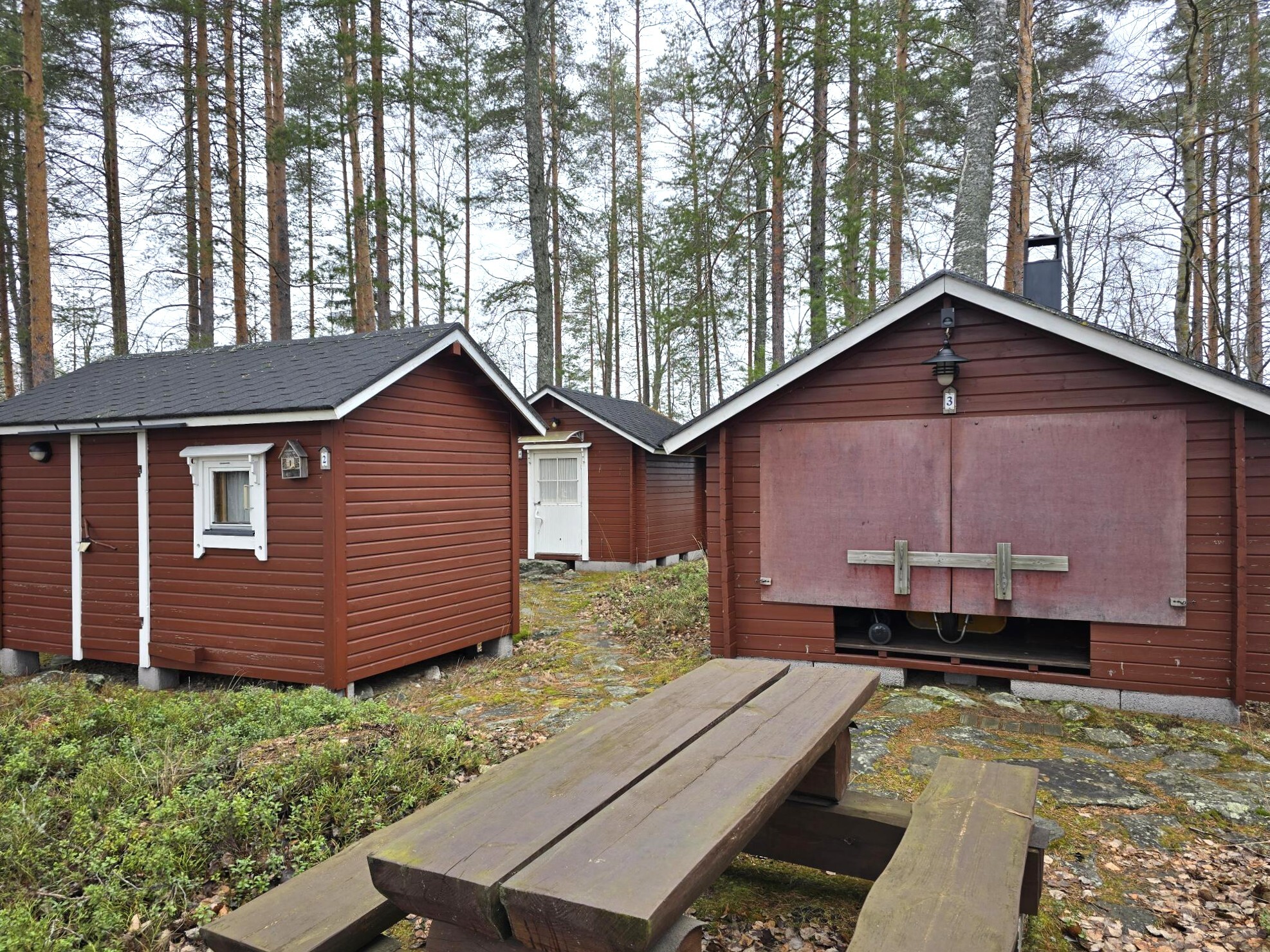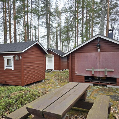 Rakennustyypin kuvaus: Vaja 1 (2,5 x 4,30 m), vaja 2 (3 x 3 m), keittokatos (3 x 3 m) sekä puucee