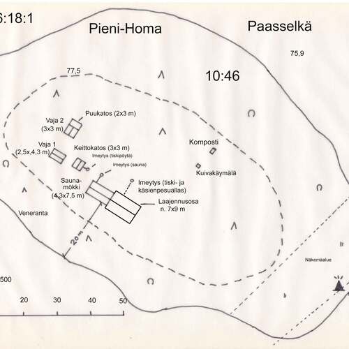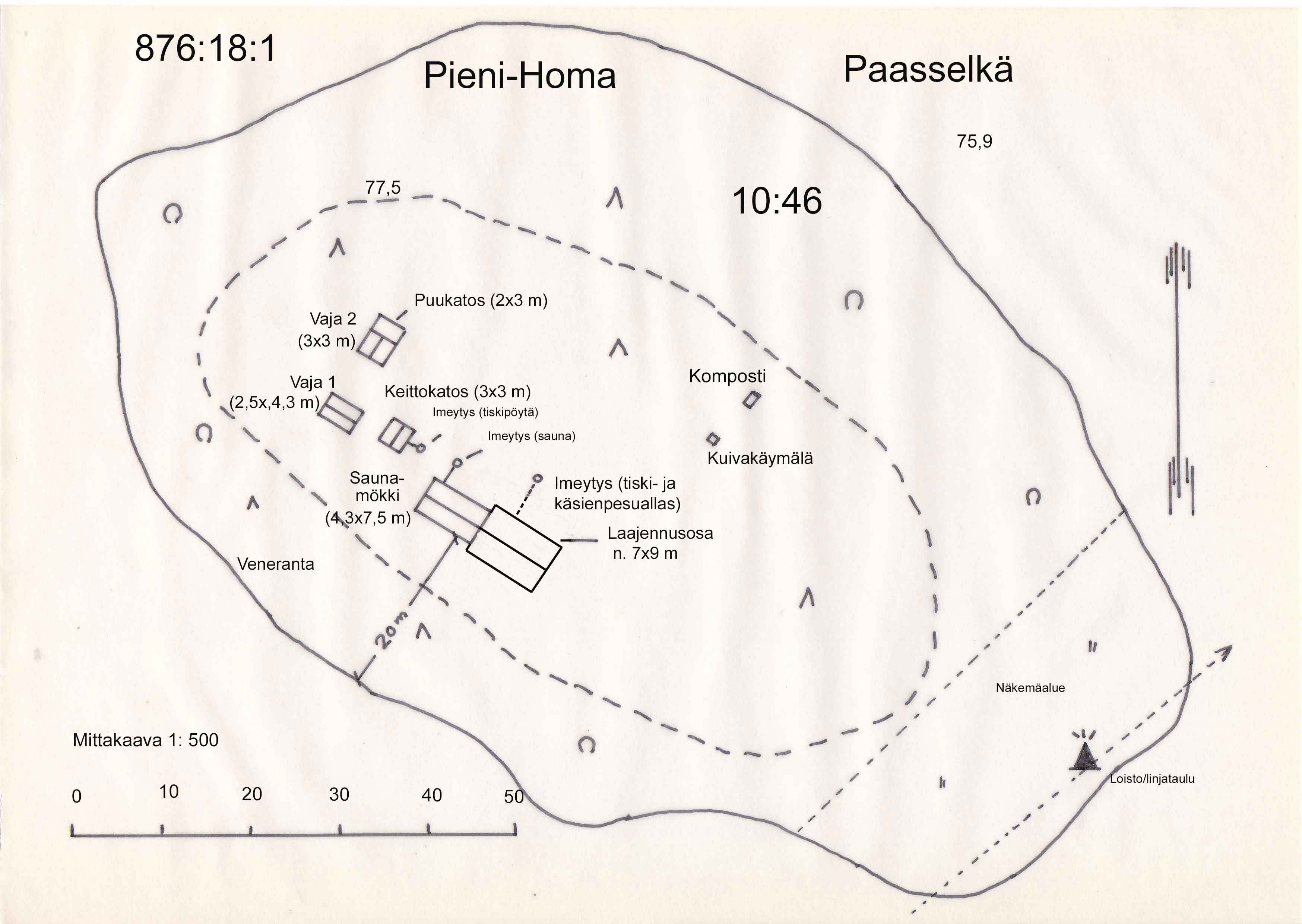 Kiinteistöön kuuluu myös viereisen Homa-saaren niemenkärki. Myytävän kiinteistön pinta-ala on kaikkiaan 1,3345 hehtaaria.