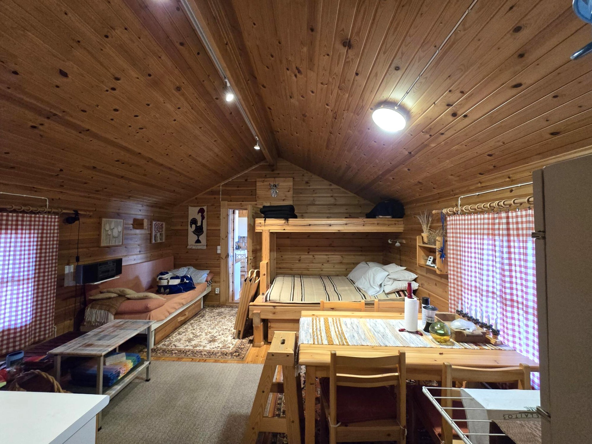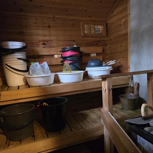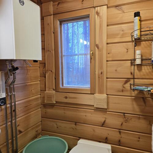 Varusteet: puukiuas, lattiakaivo, ikkuna ulos