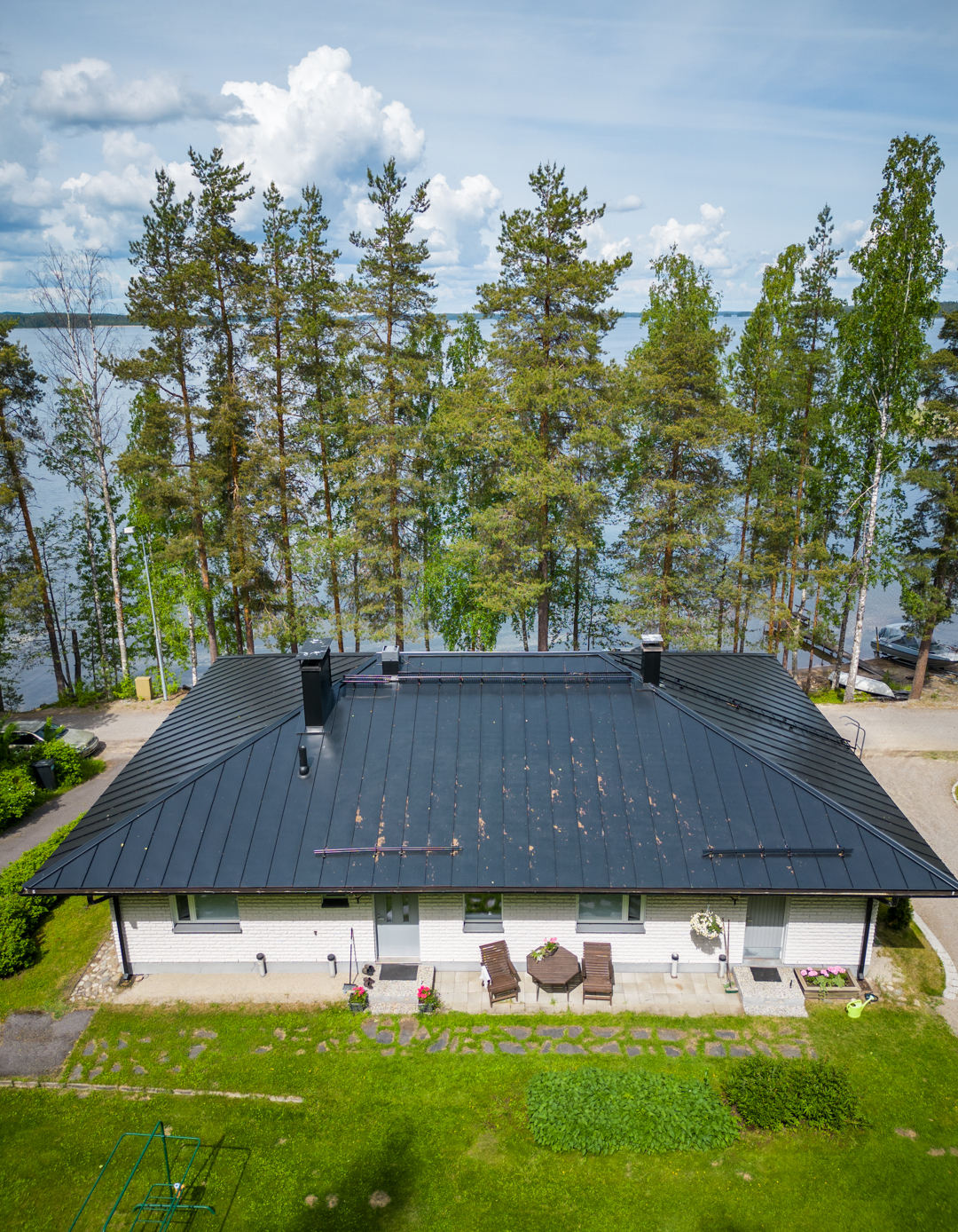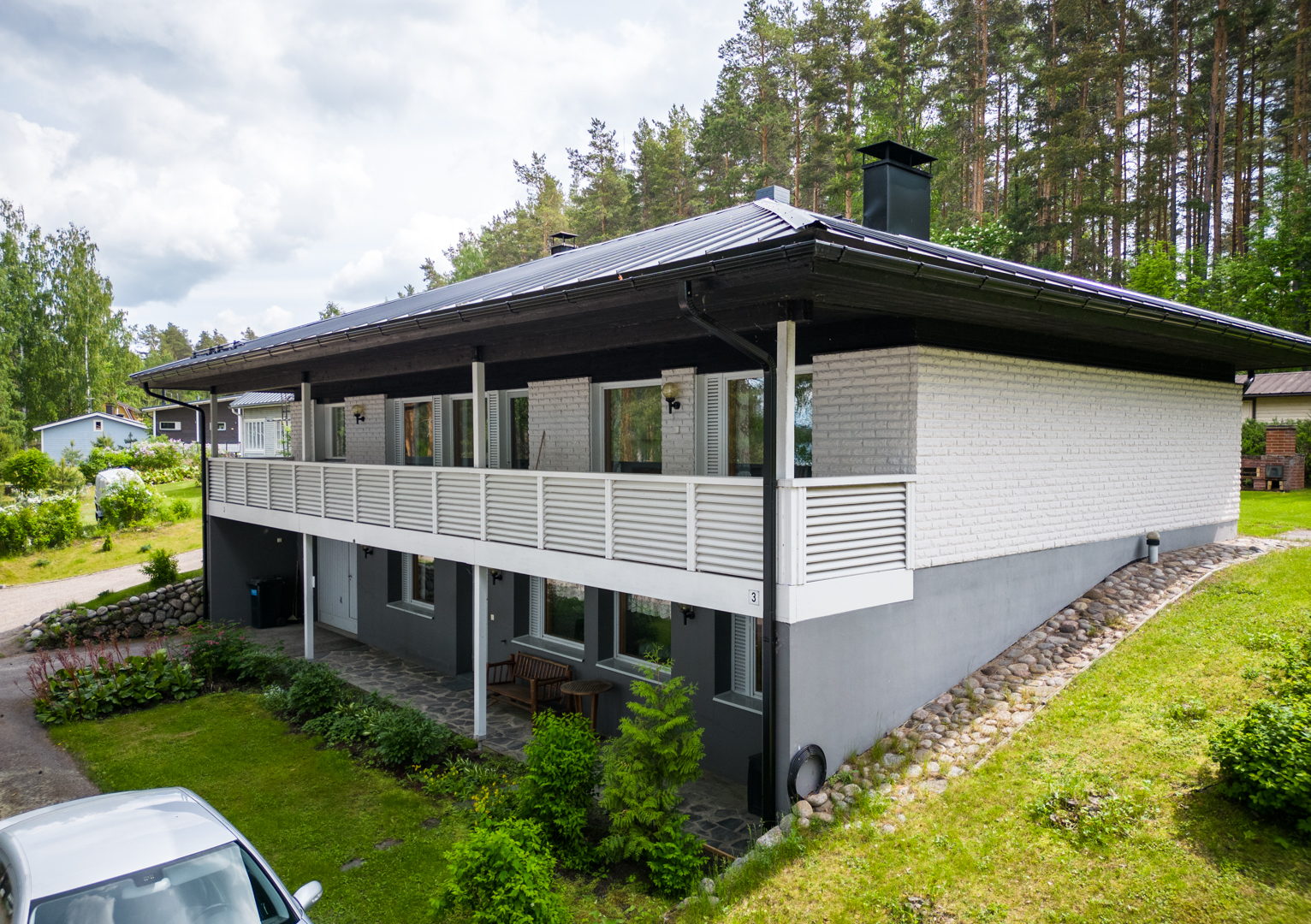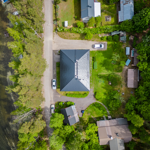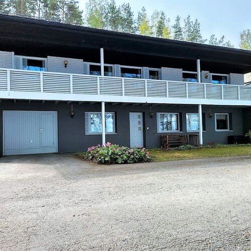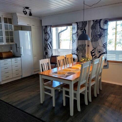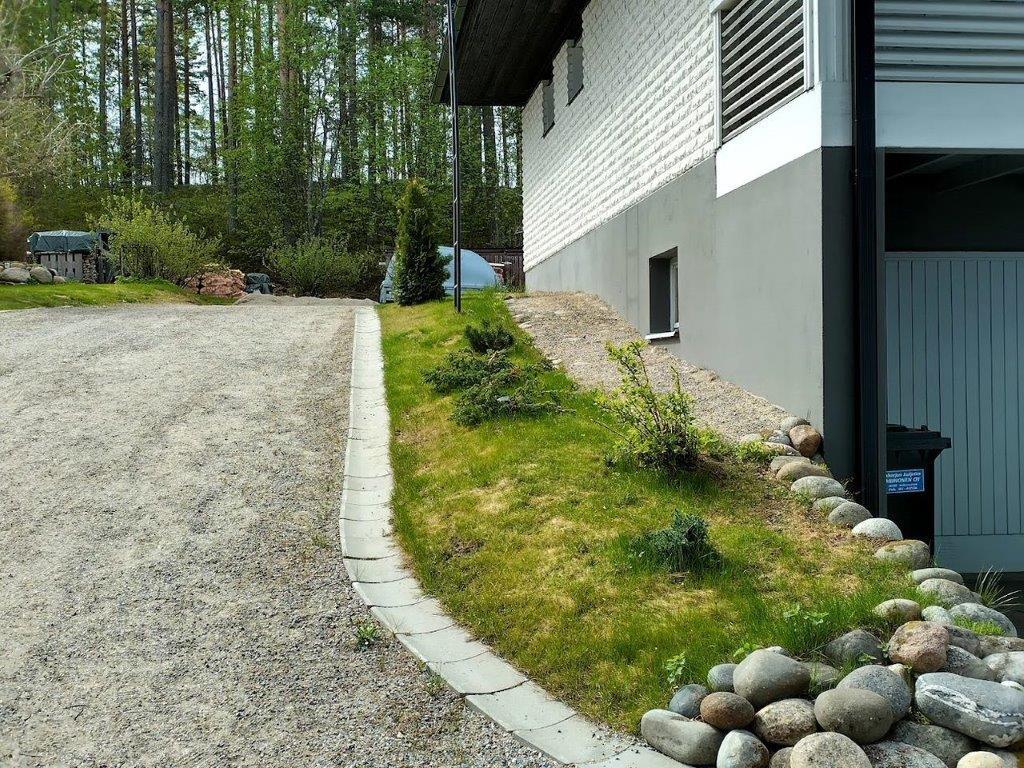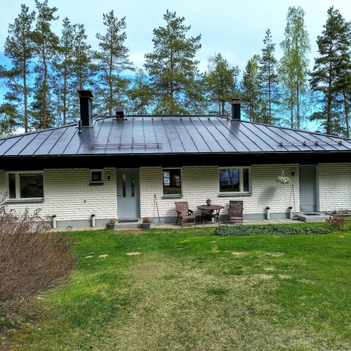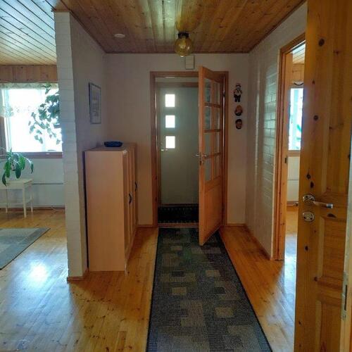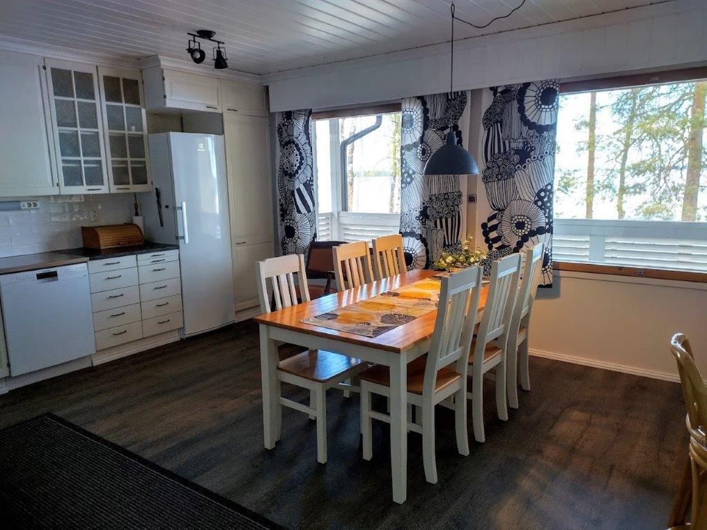 Talossa on tilaa asua, yrittää, harrastaa, tilaa on isolle perheelle tai vaikka kahdelle, mahdollisuuksia on paljon. Yläkerrassa on olohuone, keittiö, 3 makuuhuonetta ja koko talon levyinen parveke upein järvinäköaloin, alakerrassa olohuone, avokeittiö, 2 makuuhuonetta, kodinhoitohuone ja saunaosasto. Kerroksia yhdistää tukeva portaikko, molemmissa kerroksissa on myös omat sisäänkäynnit. Säilytys- ja varastotiloja on runsaasti sekä talossa että piharakennuksessa.