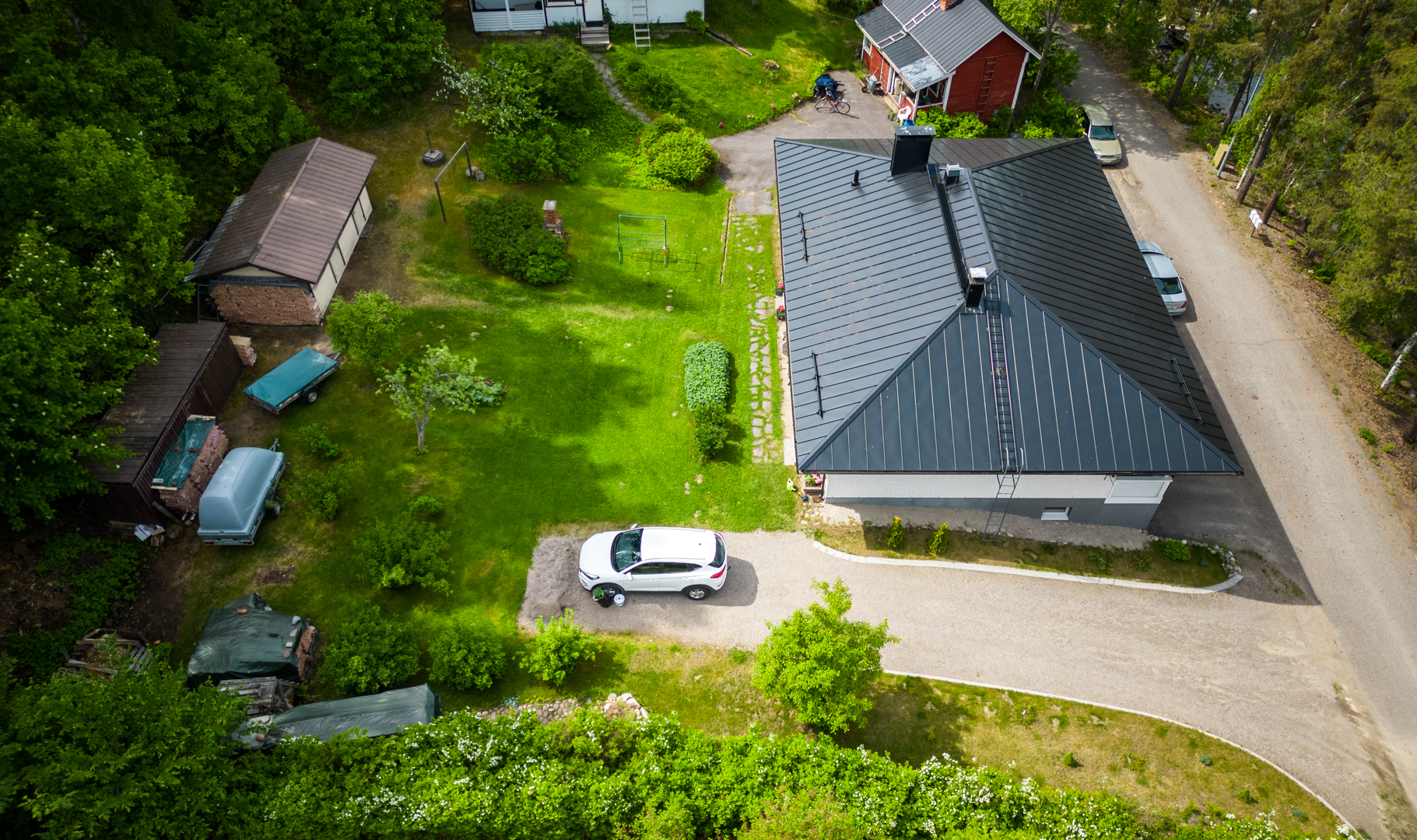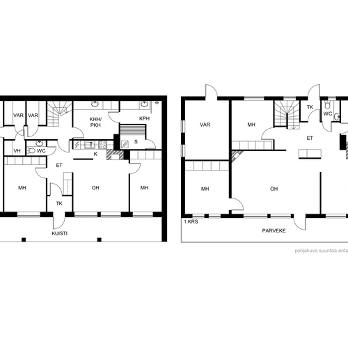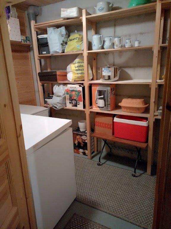 Asuinrakennuksessa komeroiden ja vaatehuoneiden lisäksi lämpöeristetty varasto, pihalla erillinen varastorakennus, puuliiteri.
