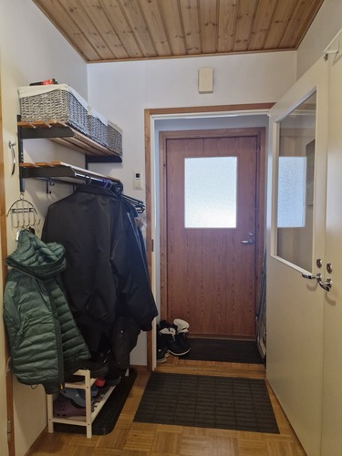 Autopaikka huoneiston sähkössä, lämmityspainike eteisessä.