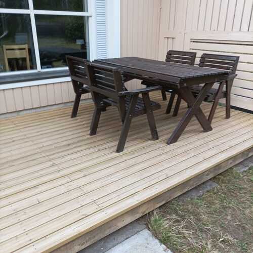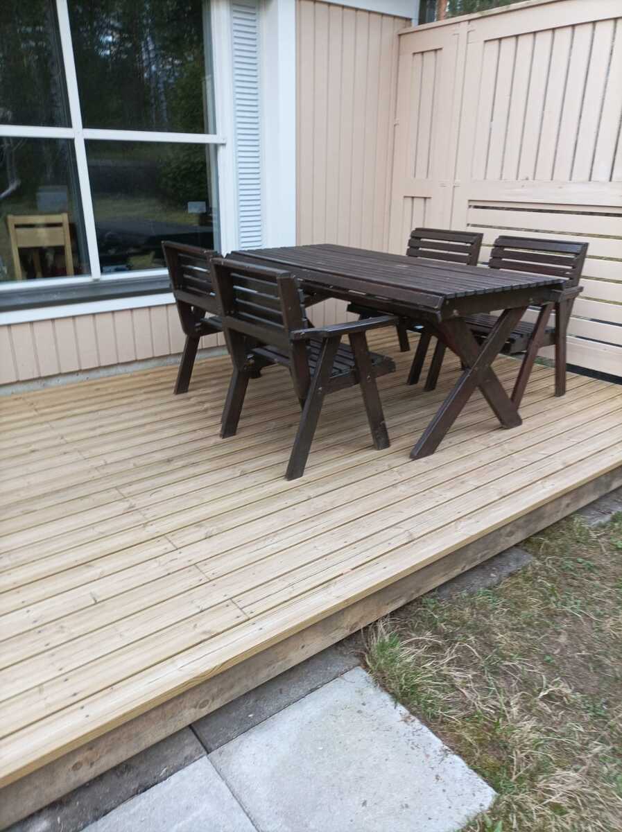 Asennettu takapihan puolelle uusi terassilaudoitus.