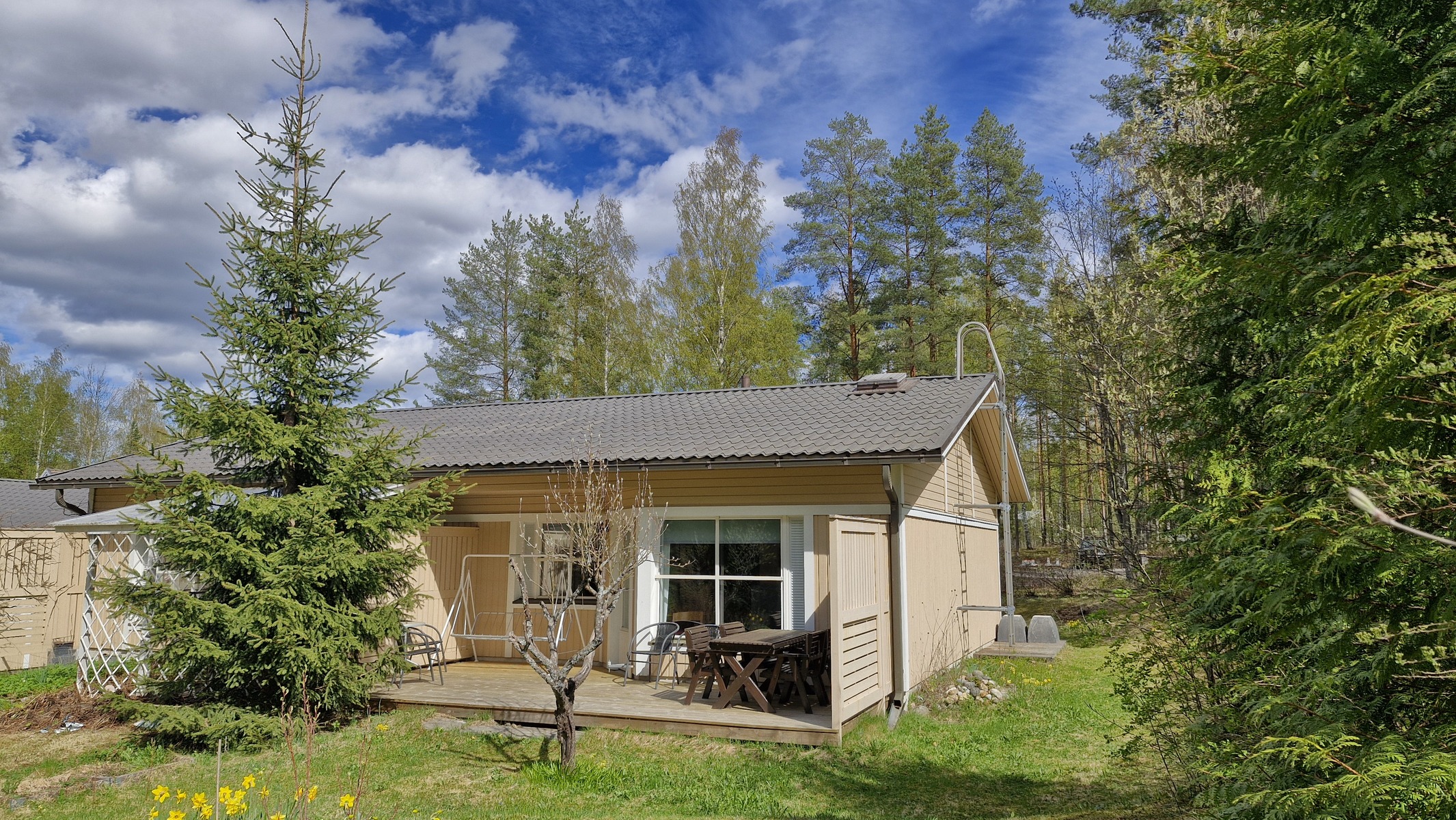Myydään irtaimistoineen: huonekalut ja puutarhakalusteet sisältyvät kauppaan.